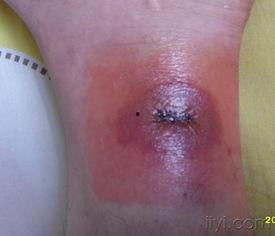 1. 皮肤脓肿:皮肤脓肿是常见的化脓性炎症,图片中可以看到皮肤表面红肿、有脓液流出。